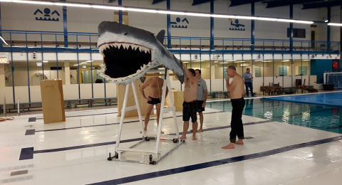 Daarnaast werden er scènes rondom het zwembad nagespeeld door acteurs en werden er special effects in het rond het water toegepast.