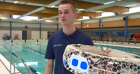 Studenten van de TU Eindhoven hebben een demonstratie gegeven met drones die in een zwembad een dreigende verdrinking herkennen en in actie komen.