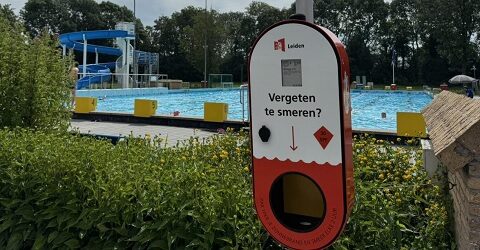 In de meeste buitenzwembaden zijn er gratis zonnebrandcrème dispensers te vinden om je in te smeren.