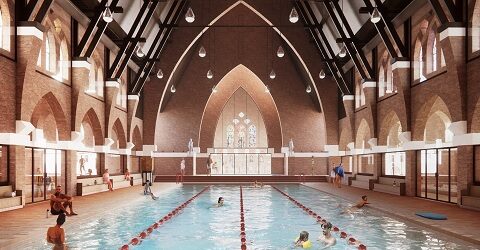 De gerenommeerde architecten MVRDV en Zecc gaan de transformatie realiseren van de Sint-Franciscus van Assisikerk in Heerlen naar openbaar zwembad.